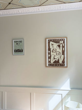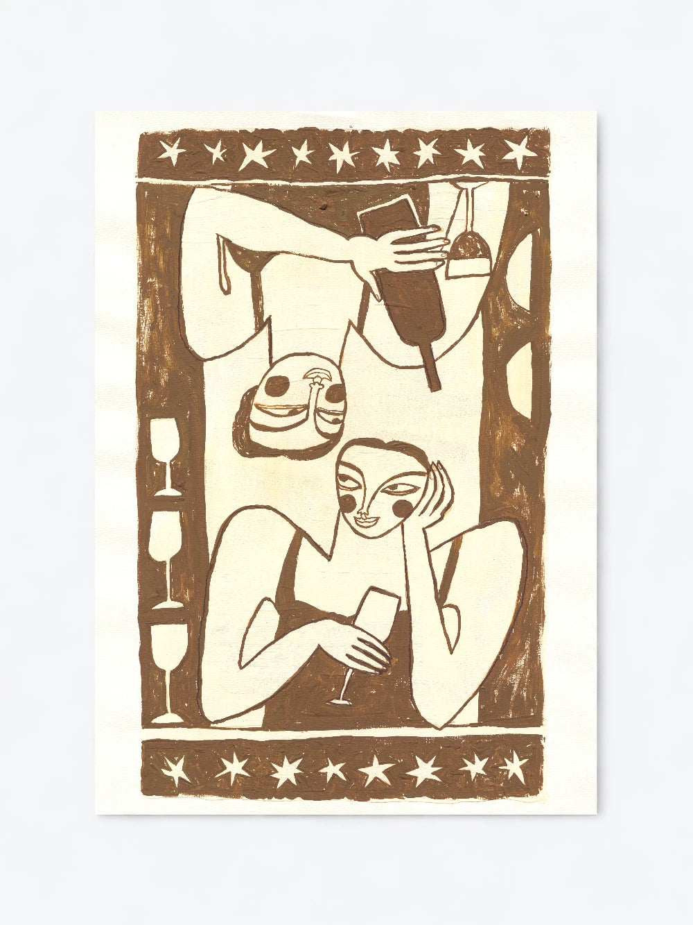 This expressive poster by MÜHI, created exclusively for NORDINARY, captures the quiet intimacy of shared moments and open conversations. With its poetic title and distinctive line work, Just One Glass and A Thousand Stories invites you to slow down and appreciate the everyday rituals that bring us together.